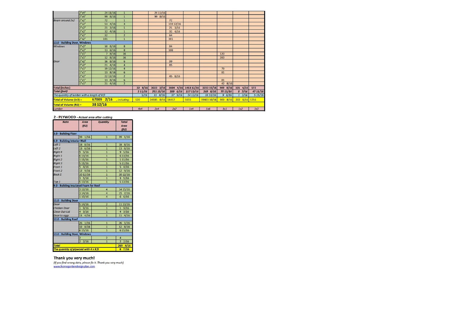 Total area of plywood: 269 1/4 feet2 (= 8 1/2 plywoods with 4'x8')
