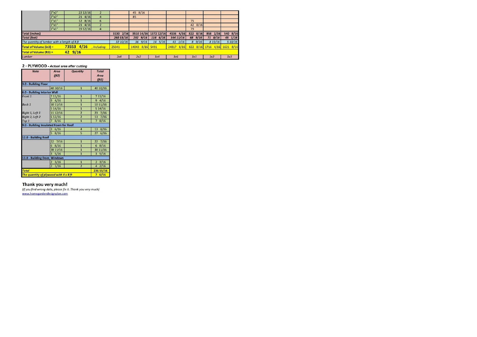 Total volume of lumber: 73553 inches3 (= 43 feet3)